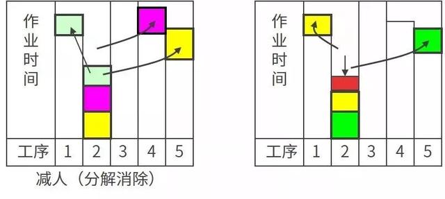 同樣的產(chǎn)品,因工序組合及布局的不同導(dǎo)致平衡率的差異。平衡率較差時,需反思工序規(guī)劃的合理性。